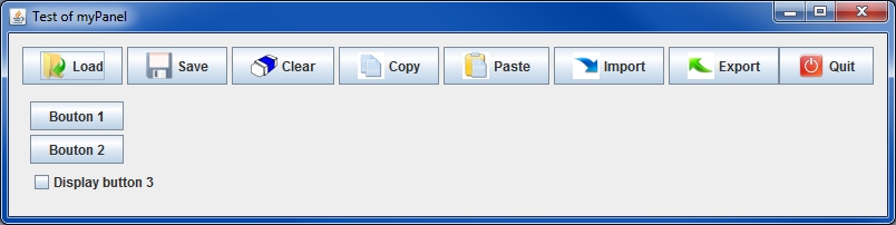 In fact, rather than to create a GFrame, then adding buttons to call for read, write, clear, and so on, it is easier to call directly the GPanTest] class as explained below.