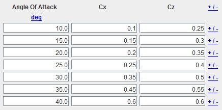 aeroTabIhm=new GTable1D("Cx/Cz = f(Mach)", TableOrientation.VERTICAL,incTabIhm, CxTabIhm, CzTabIhm);